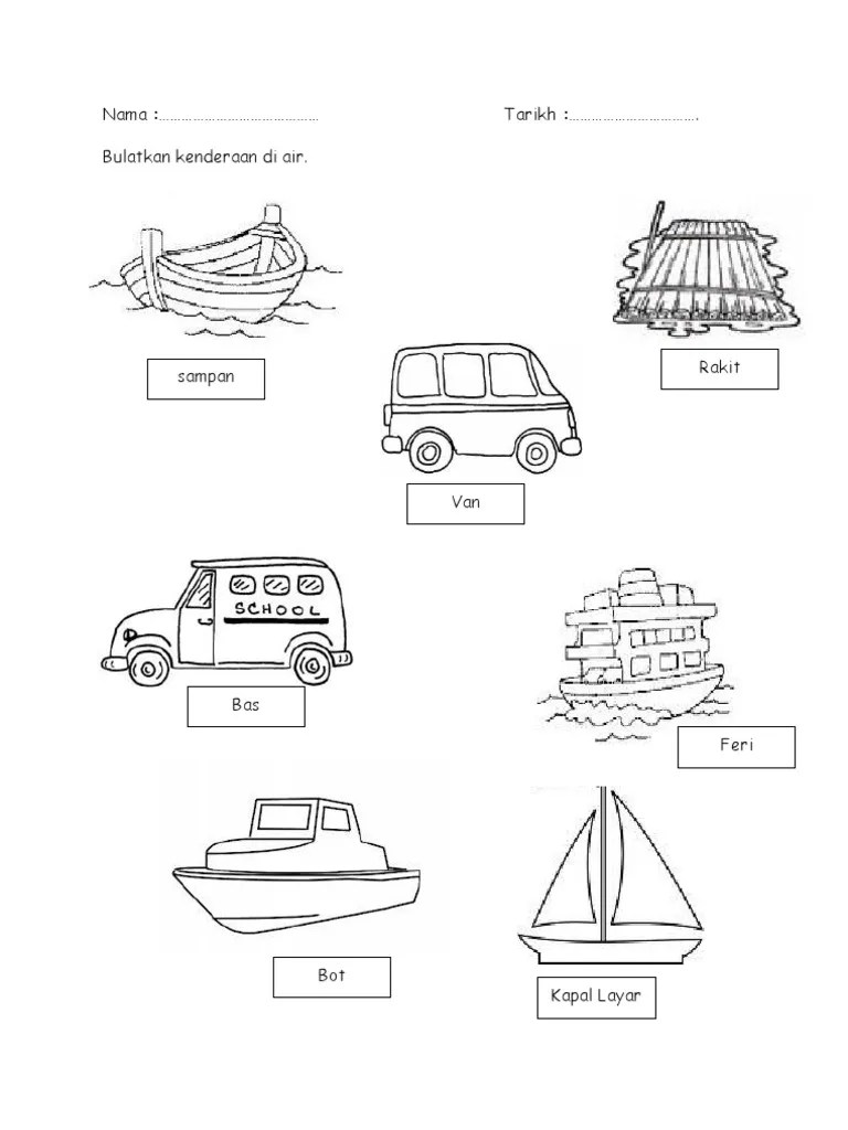 Prasekolah Gambar Kenderaan Di Air / Kenderaan Di Air Worksheet